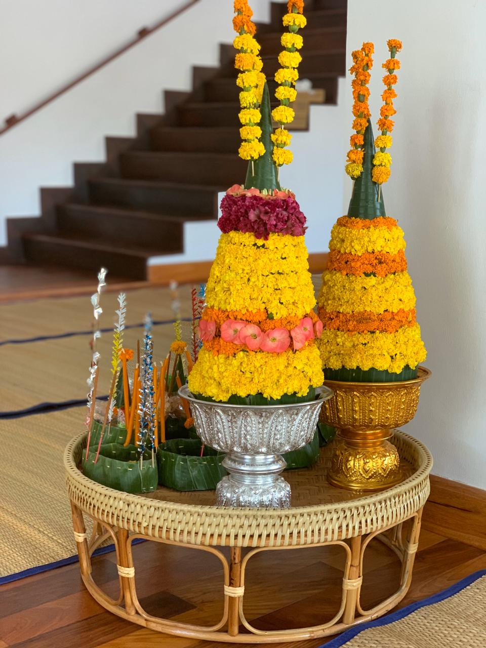 Discover the beauty of Lao culture through traditional flower arrangements used in temple offerings. Guests may also wear traditional Lao dress for the temple visit.